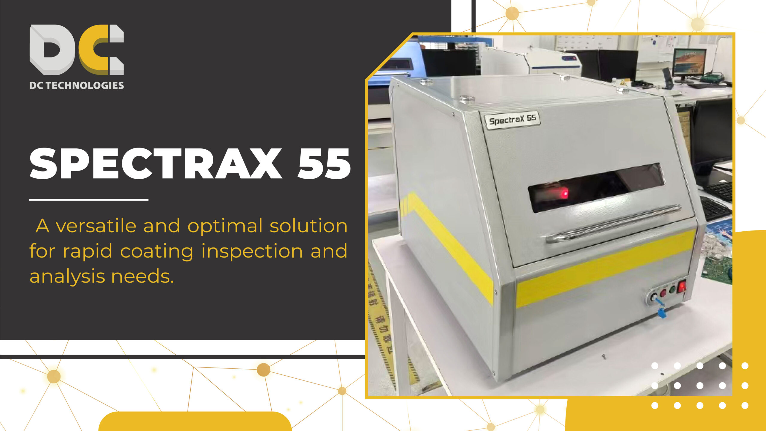 The SpectraX 55 is the ideal choice for businesses looking to optimize their production process and enhance product quality while protecting consumers and the environment. Contact DC Technologies now to learn more about the SpectraX 55 coating thickness analyzer and accurate measurement solutions for your industry!